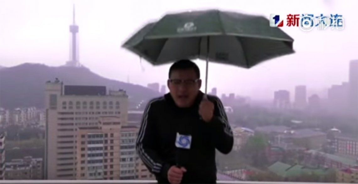 Un periodista chino se encontraba informando sobre las fuertes tormentas que azotaban a su ciudad cuando fue alcanzado por los efectos de un rayo.