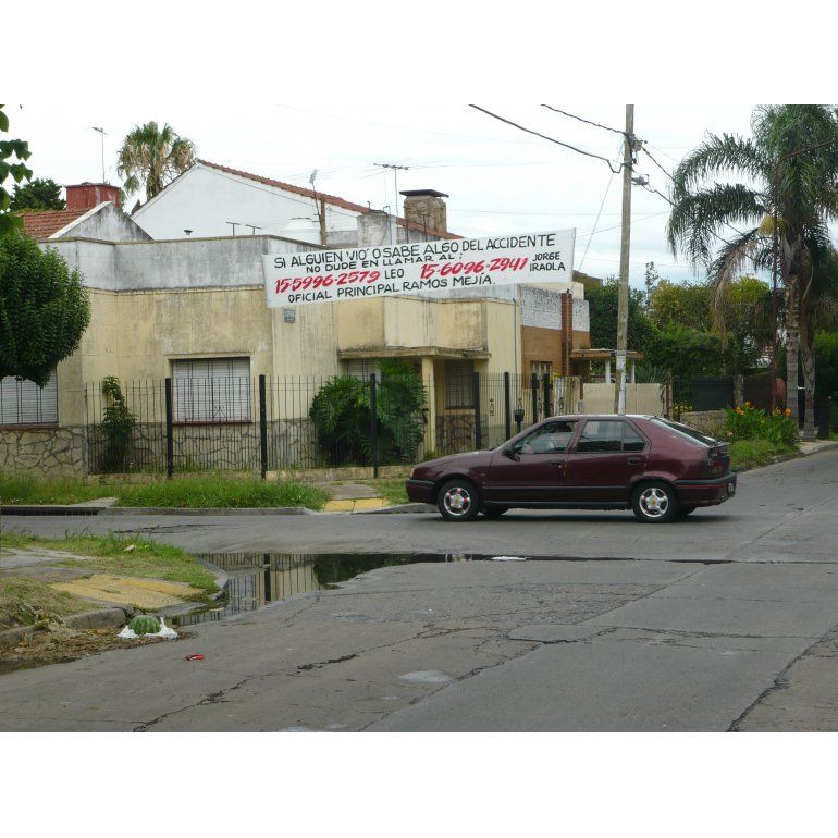 Y una de las medidas que adoptó, fue colocar dos pasacalles en la intersección de Medrano y Espora, que dan cuenta del incidente de tránsito y del pedido de colaboración "Si alguien vio o sabe algo, no dude en llamar al 15-5996-2579 (su celular) o al 15-6096-2941 (el celular de Jorge Iraola, oficial principal de la comisaría de Ramos Mejía".
