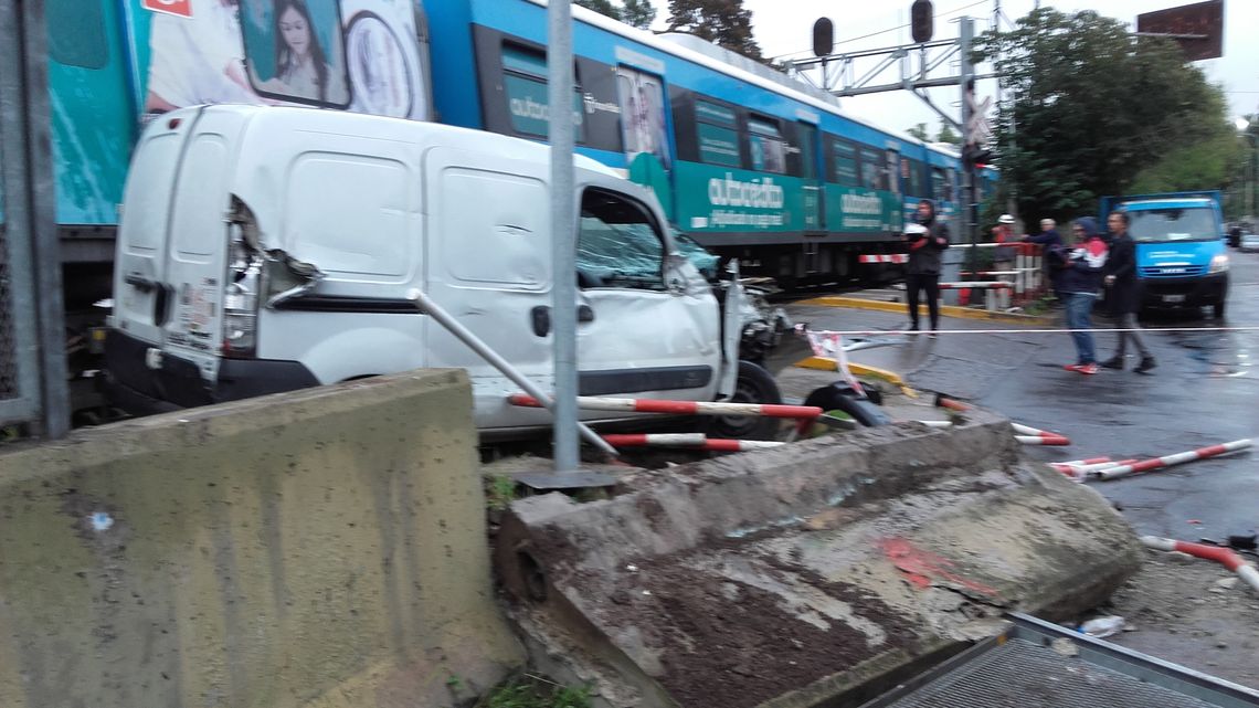 Un herido lever provocó la colisión entre un tren de la Línea Sarmiento que de Moreno se dirigía Once y una camioneta que intentó cruzar las vías con las barreras bajas de Norte (Villa Sarmiento) a Sur (Ramos Mejía) por el paso a nivel de la calle Pastor Obligado, en el límite entre los partidos de Morón y La Matanza, a dos cuadras del acceso al puente Papa Francisco. El incidente también provocó demoras en el servicio.