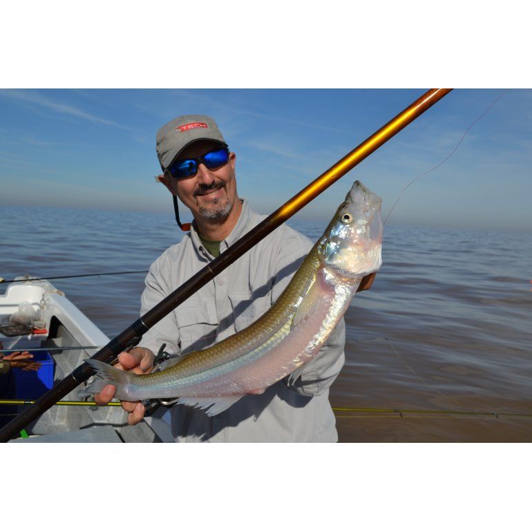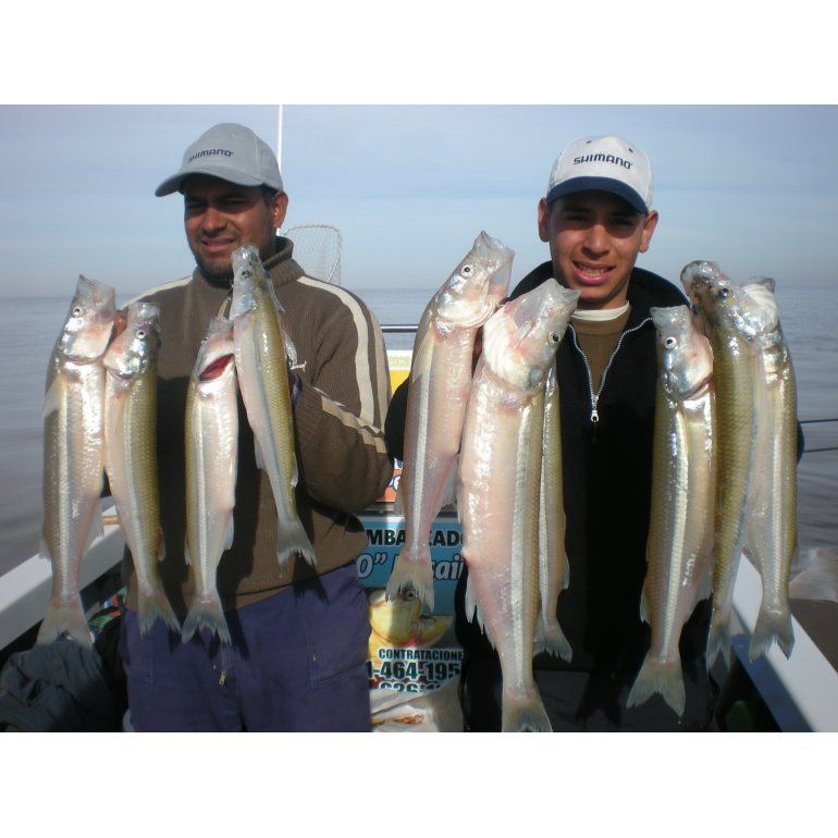 El sol asomò en el horizonte cuando ya estábamos casi en zona de pesca. Nuestro guìa no escatima combustible y sus cuatro lanchas permanentemente investigan las mejores zonas de pique, para achicar márgenes de error. Y no fallamos, dado que no tardamos en tener emociones. El suave viento norte nos permitiò navegar con comodidad y el rìo apenas rizado hizo que las boyas penas se alejaran de la embarcaciòn. De entrada arrancò Leandro, con pejes de medianos a grandes, que oscilaron entre 35 y 40 cm. Le siguieron Roberto y Joaquìn, con piezas similares. En esta salida, el objetivo era testear las nuevas cañas de pejerrey Shimano. Sinònimo de calidad en todo el mundo, Shimano lanzò al mercado sus cañas Sojurn, de 4 mts y 4,25 mts, pensadas y diseñadas para el emrcado argentino y sus pejerreyes. Esta ùltima caña, de 4,25 es la que llevamos al Riopla. Y su debut no pudo ser mejor: un matungo de 1,340kg se prendiò en la caña de Joaquìn y tras cañar con eficacia el guìa pidiò copo sabiendo que era grande. Lo trabajò con maestrìa, a estrella bien regulada con su multi Power Pro, y la sorpresa vino al llegar la pieza cerca del bote, porque la boya de atrás tambièn se movìa como loca ¡Era un doblete!. A la bestia ya mencionada, se le adosó un matungo de 800 gramos. En suma, mas de 2 kilos de pejerrey hicieron que la Shimano Sojurn pasar la prueba de fuego con eficacia, hacièndonos pensar ya mismo en las lisas del Salado que seguramente presentarÓn nuevos desafìos para tan buenas cañas.