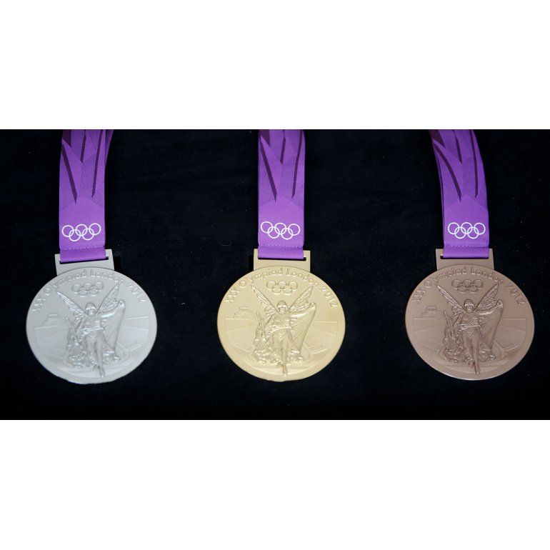 Las medallas de oro, plata y bronce a la que aspiran los deportistas de los Juegos Olímpicos Londres 2012 fueron exhibidas por primera vez en la Villa Olímpica.