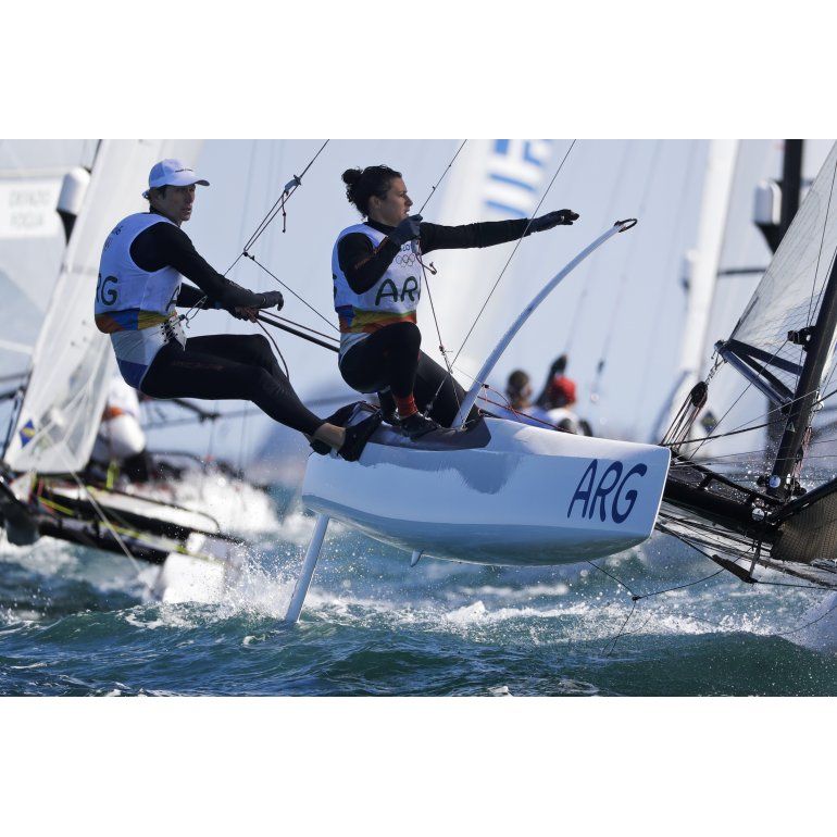 Después de la jornada del sábado, quedaron como escoltas en la general de la Clase Nacra 17 mixta, por detrás de la dupla australiana Jason Waterhouse-Lisa Darmanin.