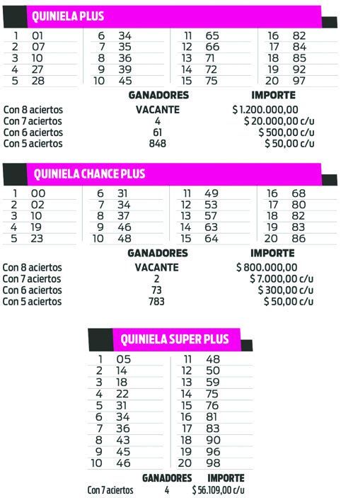 QUINIELA PLUS - CHANCE PLUS- SUPER PLUS