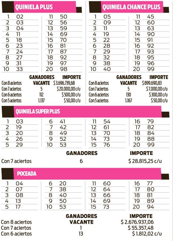 QUINIELA PLUS - CHANCE PLUS - SUPER PLUS Y POCEADA