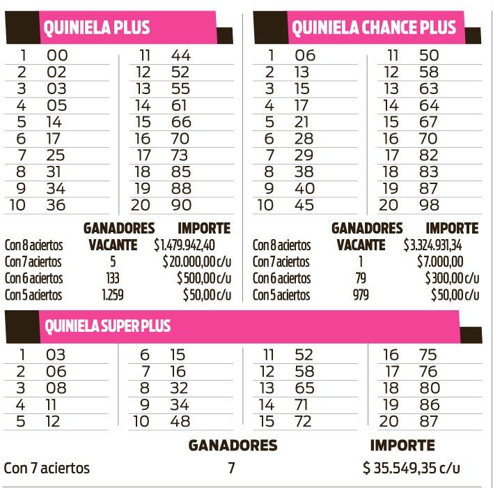 QUINIELA PLUS - CHANCE PLUS Y SUPER PLUS