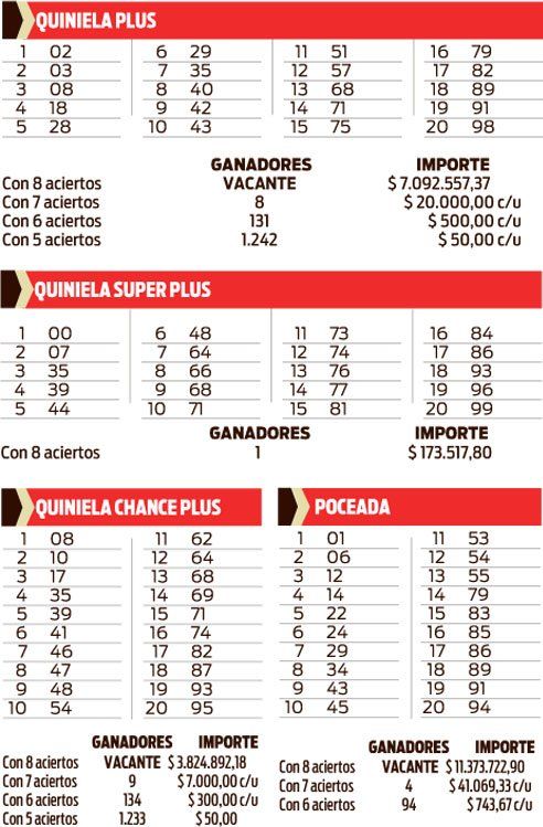 QUINIELA PLUS - SUPER PLUS - CHANCE PLUS - POCEADA