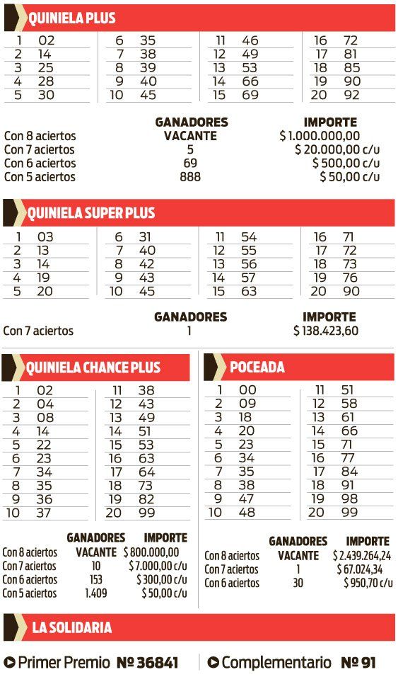 QUINIELA PLUS, SUPER PLUS, CHANCE PLUS, SOLIDARIA Y POCEADA