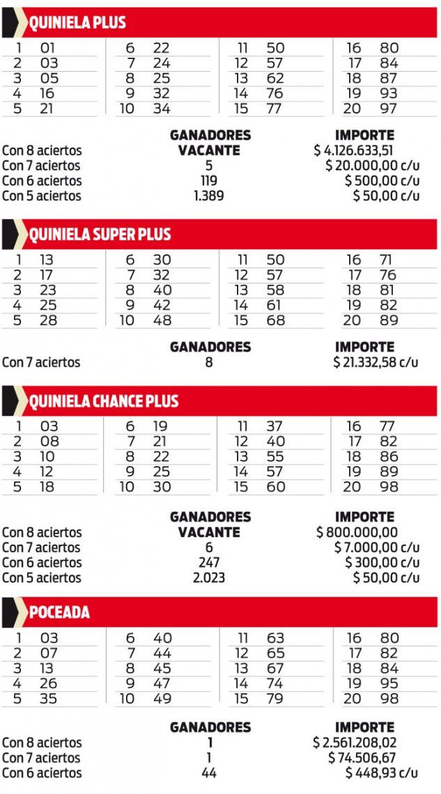 QUINIELA PLUS, SUPER PLUS Y CHANCE PLUS - POCEADA