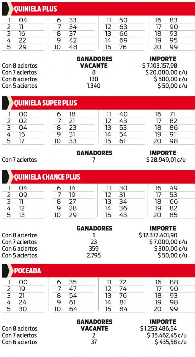 QUINIELA PLUS, SUPER PLUS Y CHANCE PLUS - POCEADA