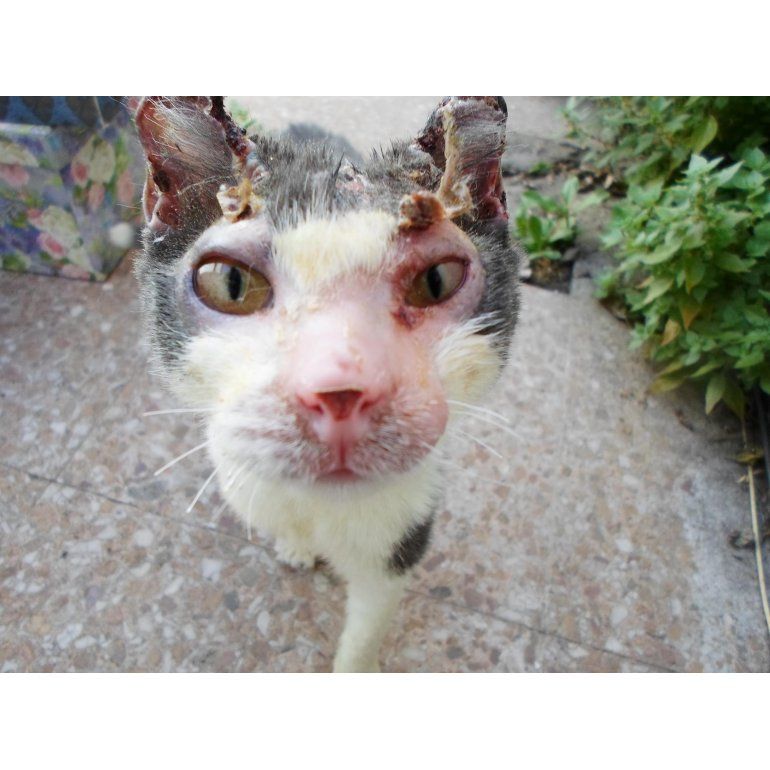 "Cuando la fui a buscar tenía a la vista solamente un ojo. El otro estaba tapado con piel y pelos totalmente quemados. De urgencia contacté a un oftalmológico que la vio y le hizo una limpieza en la zona. Cortó la piel quemada y ¡apareció el ojito! Fue una alegría enorme", manifestó Sandra a Diariopopular.com.ar