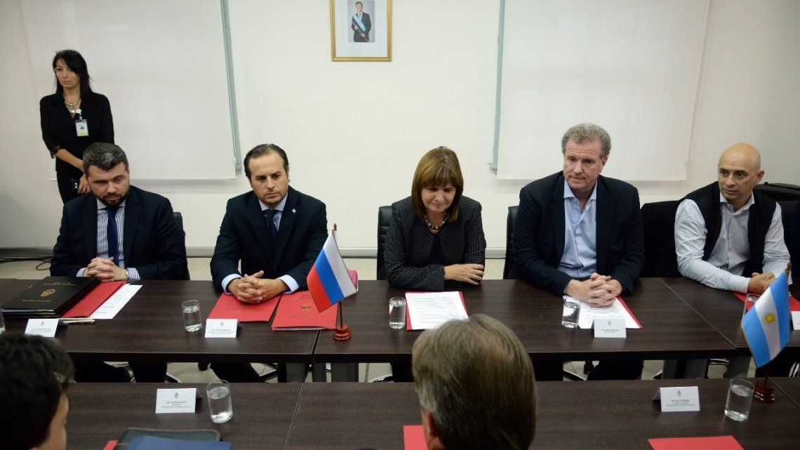 En representación del gobierno local, firmó la ministra de Seguridad, Patricia Bullrich, y por el gobierno ruso, su embajador en la Argentina, Viktor Koronelli. Además estuvo presente el titular del programa Tribuna Segura, Guillermo Madero, quien viajará a Rusia oficialmente para monitorear los alcances del acuerdo. También en misión oficial estará el responsable de la Aprevide, Juan Manuel Lugones, quien aportó una buena cantidad de nombres a la lista negra.