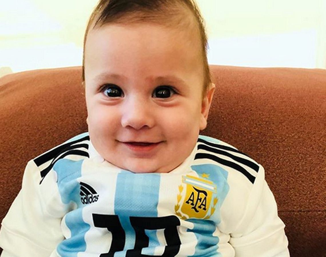 En la foto, el niño tiene puesta la 10 de Argentina, la que usa su papá.