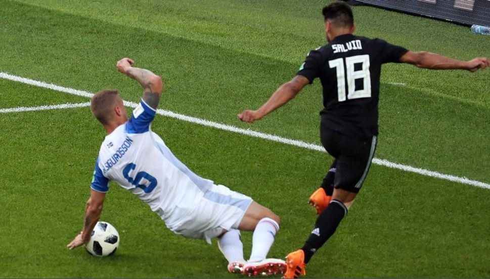 A los 41 minutos del primer tiempo, Salvio tiró un centro y la pelota rebotó en la mano de Sigurdsson. El juez polaco Szymon Marciniak consideró que no hubo intención. En el complemento, Pavón desbordó por izquierda y Birkir Savarsson lo bajó. Para el referí no hubo nada. Repasá las jugadas.