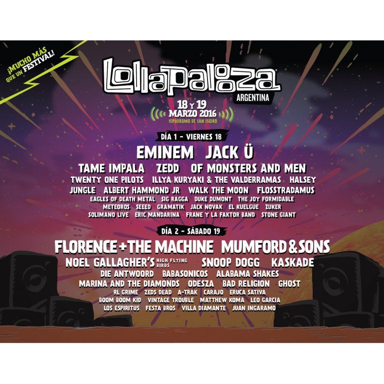 Lollapalooza donde más de 60 bandas internacionales y nacionales se presentan a lo largo de 2 días en los 5 escenarios distribuidos en el Hipódromo de San Isidro, sumados a una amplia propuesta gastronómica con más de 40 opciones para todos los gustos.