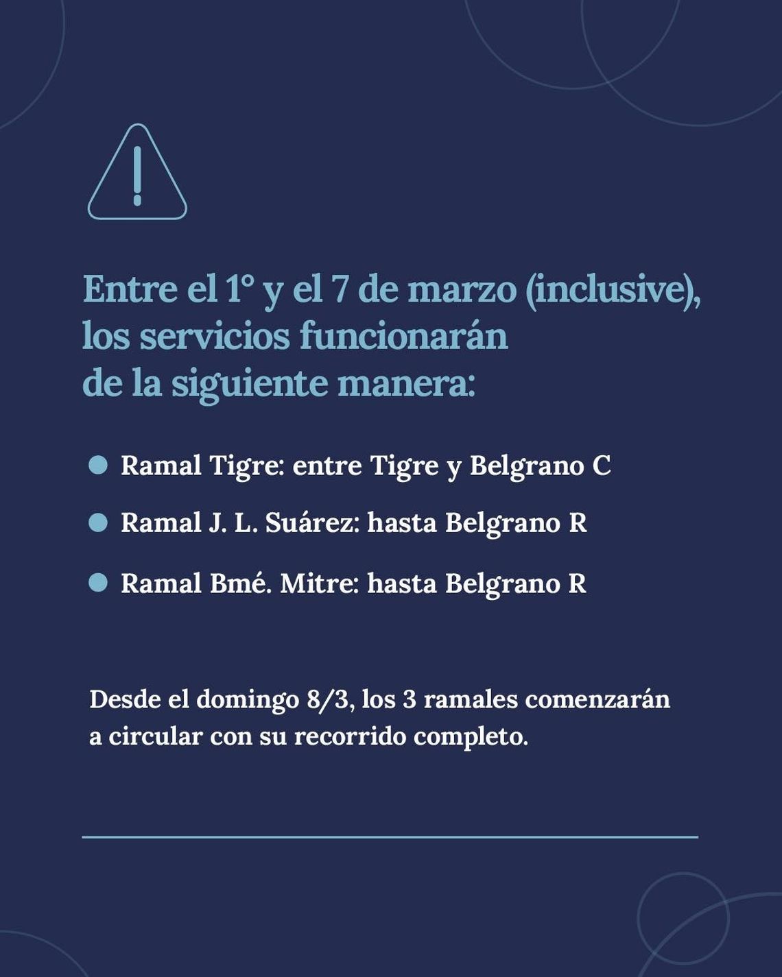 Como la dispuesta antes de finalizar febrero, esta nueva prórroga resultó sorpresiva, ya que hasta el jueves Trenes Argentinos anunciaba que los trenes del ramal Suárez -y también los de los ramales Bartolomé Mitre y Tigre- volverían a tener como cabecera a Retiro este domingo 8 de marzo.