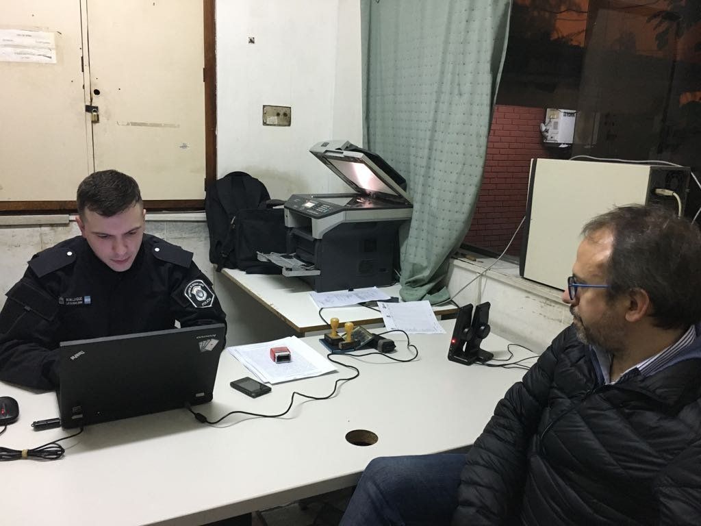 En ese preciso instante descendió de su vehículo para impedir que un hombre de 50 años deje de propiciarle golpes de puño a plena luz del día a una mujer, de 44, quienes son pareja y tienen dos hijas menores.