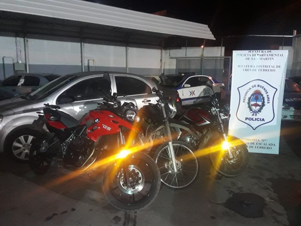 La Policía Bonaerense detuvo a 5 personas mayores de edad que ya están disposición de la justicia. Además, se secuestraron una motocicleta BMW GS700 y otra Yamaha YBR 250 con patente apócrifa. También se encontraron una pistola con 8 cartuchos y un revólver calibre 38 con 6 cartuchos. Las dos armas sin numeración visible.