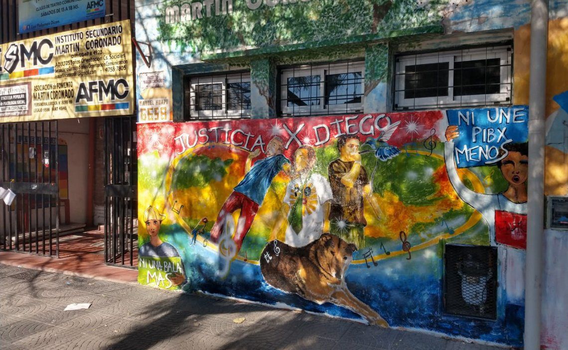 Familiares y amigos de Diego Cagliero, el joven músico vecino de Martín Coronado muerto el pasado 19 de mayo por un oficial de la Policía Bonaerense en un presunto caso de gatillo fácil, llevaron a cabo un mural en homenaje a la víctima en la entrada de la Asociación de Fomento Martín Coronado (AFMC), ubicada en Nahuel Huapi 6658, frente a la estación del Ferrocarril Urquiza.