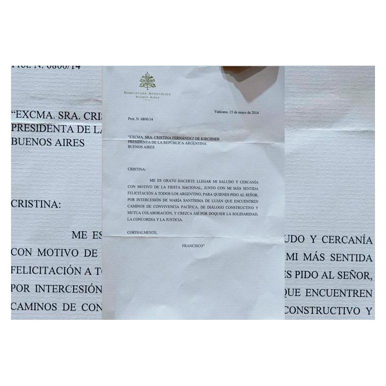 El obispo argentino Guillermo Karcher, secretario de protocolo del Vaticano, afirmó el jueves que la carta era "falsa". Pero el secretario de la presidencia argentina, Oscar Parrilli, dijo que no dudaba de la autenticidad de esa misiva, que había llegado por los canales habituales.