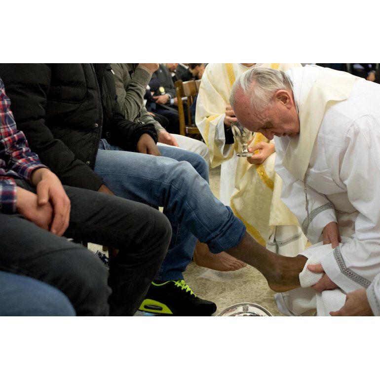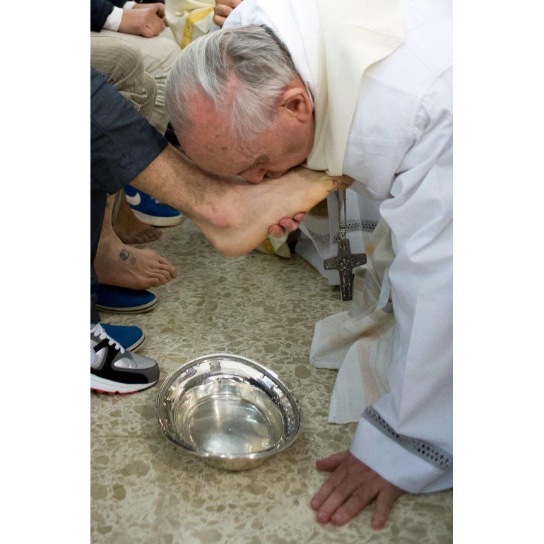 Francisco, imitando lo hecho por Jesús con los doce apóstoles, lavó los pies a doce jóvenes, de diferentes religiones y nacionalidades, dos de ellos mujeres, una italiana católica y una serbia de religión musulmana, otro gesto del Papa que ha llamado la atención, visto que los doce apóstoles fueron todos hombres.
