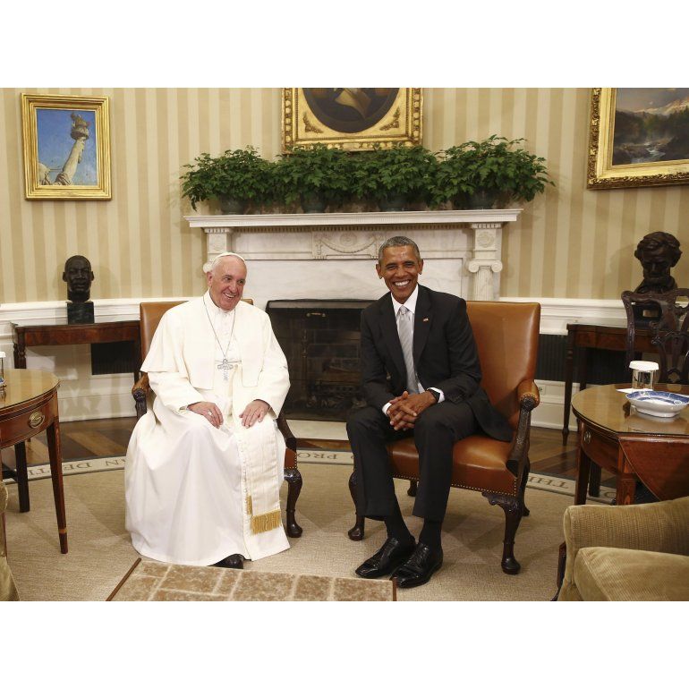 De otro lado, el pontífice argentino le entregó al presidente de los Estados Unidos un medallón en relieve de bronce de la Reunión Mundial de Familias, un gran evento católico en Filadelfia que fue la razón original de su visita a Estados Unidos.