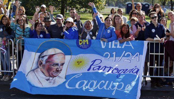 Un grupo de argentinos, siempre presentes en cada sitio que visita, colgaron una bandera con la cara de Jorge Bergoglio y una inscripción: "Villa 21/24". Incluso Twitter se subió a la marea de Francisco en el país norteamericano y sacó una serie de emojis que se pueden utilizar en la red social.