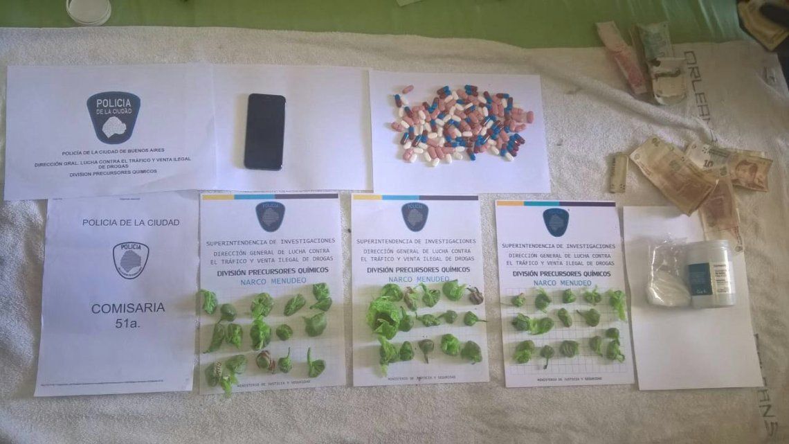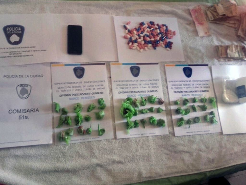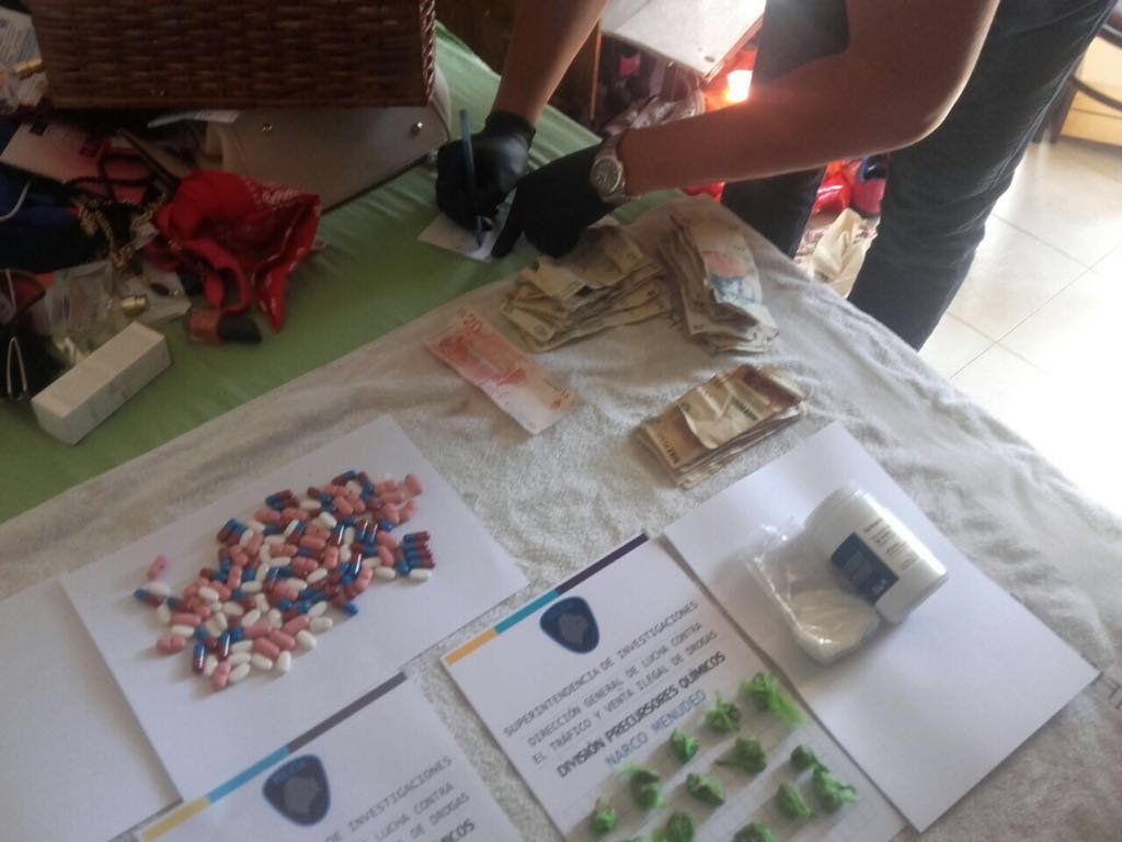 En el departamento de Denisse, se encontraron 115 pastillas de efedrina y 50 paquetes de marihuana fraccionada. Además había tijeras y gran cantidad de trozos de nylon verde coincidente con el de los envoltorios incautados previamente a la imputada. En tanto en la casa del taxista, se secuestraron una notebook, una tablet, un celular, $20.000 y pequeñas cantidades de marihuana.