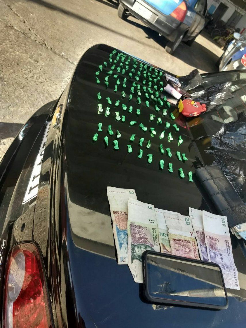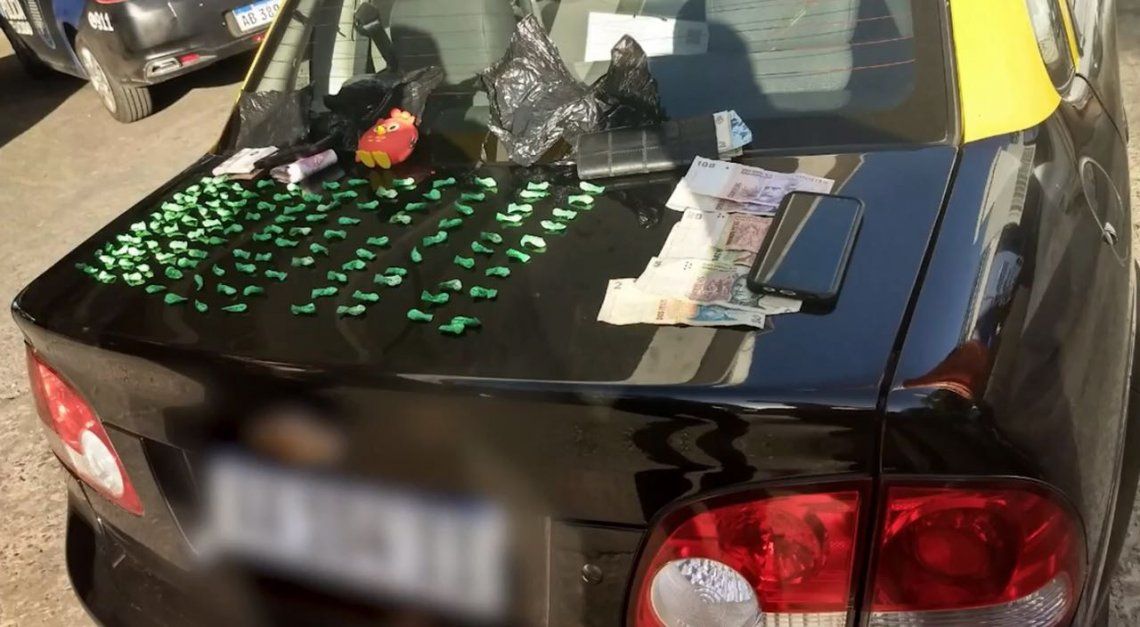Dentro del taxi se encontraban el chofer y una travesti, y tras requisar el habitáculo del vehículo ante testigos fue hallada bajo la alfombra del asiento delantero, una cartera con 120 dosis de cocaína listas para su comercialización y $ 8000 pesos.