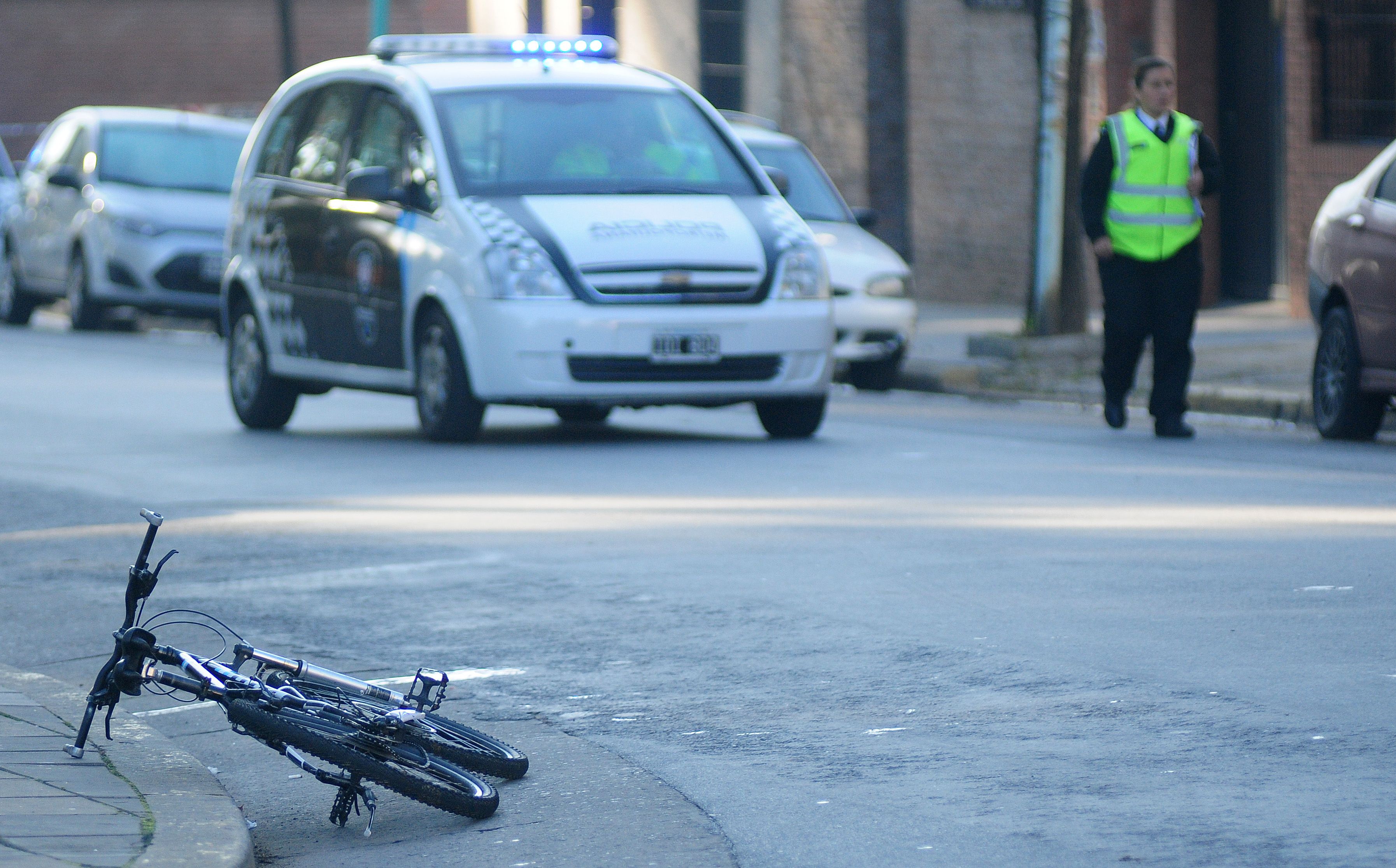 El incidente se produjo en alrededor de las 6 de la mañana en la intersección de Crisólogo Larralde y Andonaegui, cuando la mujer, que se desempeña en la Policía Metropolitana, se dirigía a su trabajo en bicicleta y fue embestida de atrás por un Ford Focus de color negro, en el que circulaban los tres individuos.