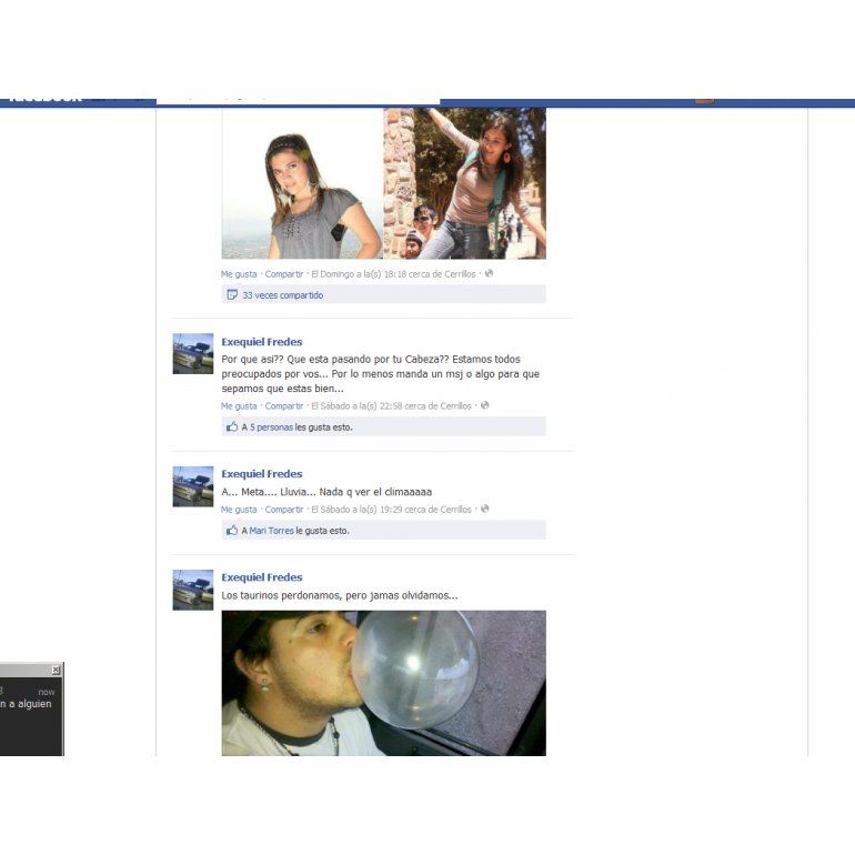 También en el Facebook de Exequiel Fredes, el novio de Luján, publicó el sábado a las 22.58 un mensaje en muro pidiendo que envíe un mensaje para saber que esté bien.