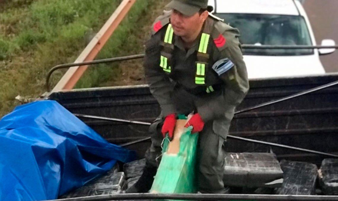 Al aproximarse al vehículo, los uniformados percibieron un fuerte olor característico a marihuana y tras descubrir la lona que se encontraba el sector de la carga, los gendarmes hallaron 342 bultos similares a los utilizados para el transporte de estupefacientes.