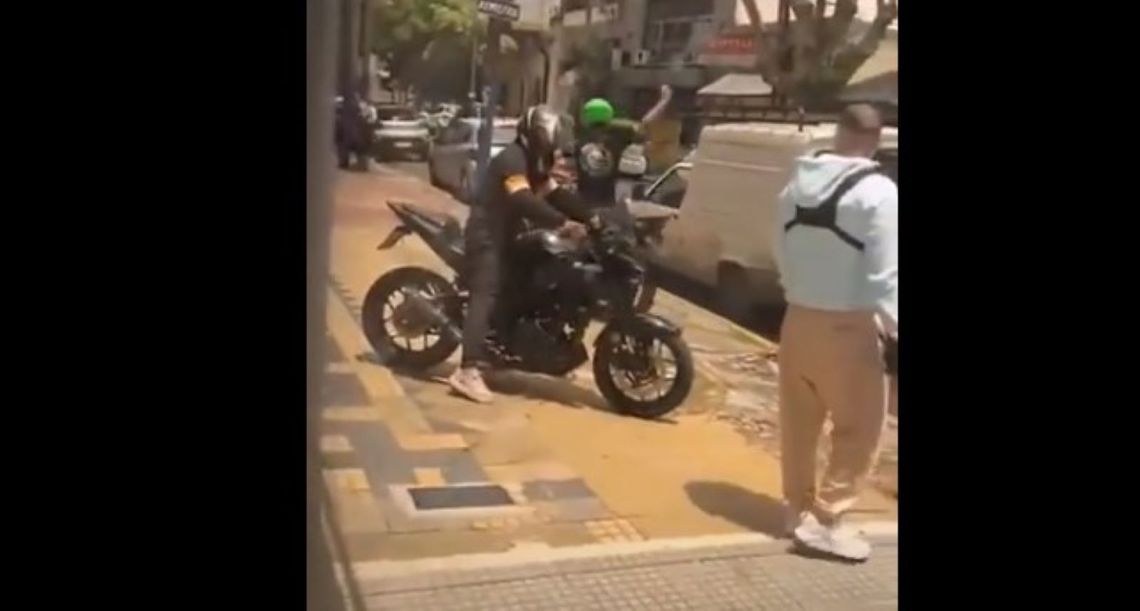 En el video, que rápidamente se viralizó por las redes sociales, se escucha una de las detonaciones y se puede ver el momento en el que uno de los ladrones, que se mueve con la moto con la que llegaron al lugar, levanta su brazo al escapar y efectúa el tercer tiro al aire justo en el momento en que baja de la vereda para sumarse al tránsito.