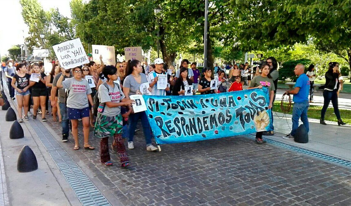 La concentración, dominada por la angustia y la desesperación por la suerte de Lucía, se llevó a cabo frente al municipio y luego marcharon hasta la Comisaría Luján Primera.