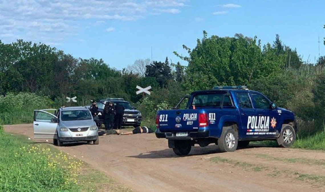 A metros de los cadáveres se halló un auto Volkswagen Suran gris con las puertas abiertas.