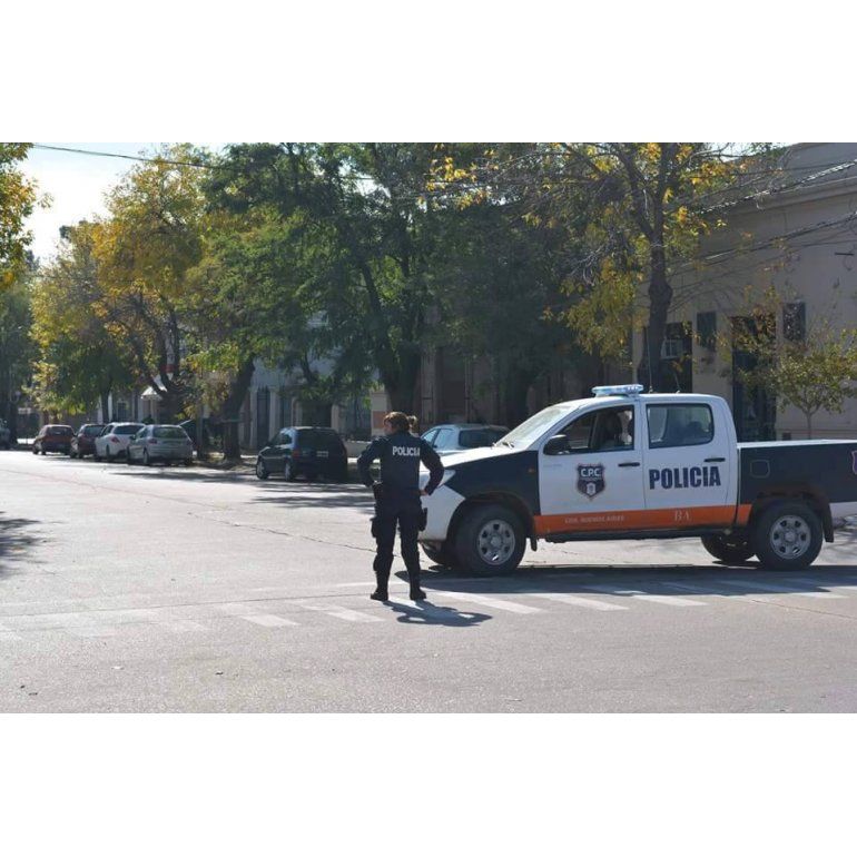 Minutos después, la Policía local implementó un cerco con vallas de hasta unos 200 metros a la redonda del banco y se decidió, por precaución, la evacuación de un Jardín de Infantes, una escuela y comercios cercanos, mientras se aguardaba la llegada de las principales autoridades de la Policía provincial y del Grupo Halcón.