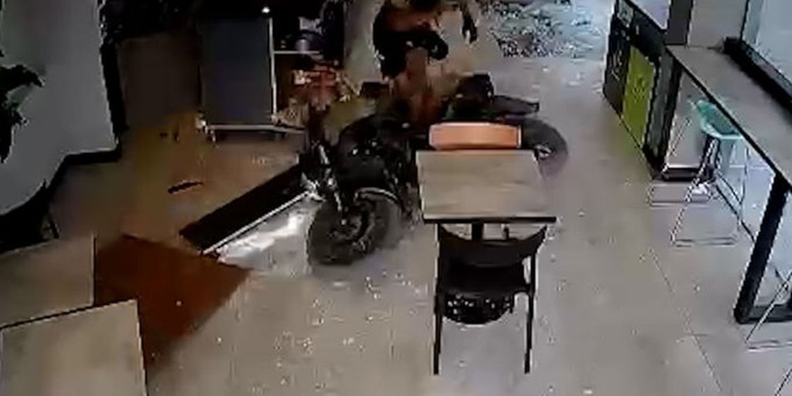 La Policía fue alertada de que la moto estaba circulando por la zona y desplegó un operativo. Enseguida localizó el rodado en una estación de servicio ubicada entre las avenidas San Martín y Naval. Cuando los delincuentes advirtieron la presencia de los efectivos, intentaron huir a bordo de la moto. Sin embargo, perdieron el control y chocaron contra la vidriera de la estación de servicio, que se hizo trizas.