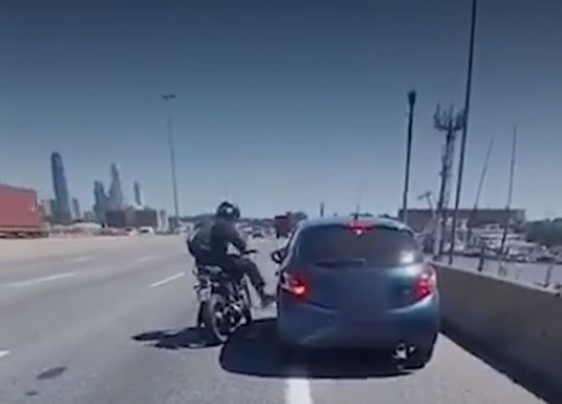 Una discusión entre un automovilista y un motociclista terminó en una violenta pelea en plena autopista Buenos Aires-La Plata, con los vehículos detenidos sobre la calzada y golpes entre los conductores. La secuencia fue filmada por testigos, se difundió rápidamente en redes sociales y generó una fuerte reacción por el riesgo que implicó para quienes circulaban por la zona. El hecho ocurrió a plena luz del día y obligó a otros autos a maniobrar para evitar choques.