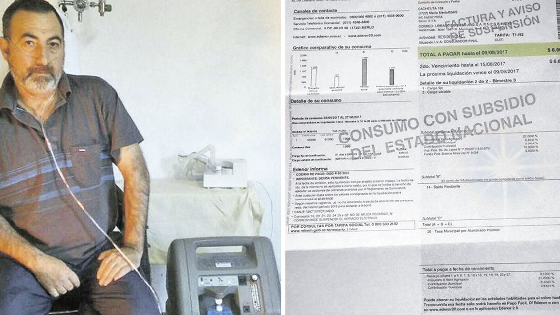 A pesar de que cuenta con una ley que lo protege, sancionada hace tres meses pero todavía sin haber sido reglamentada para su aplicación, el hombre del distrito bonaerense de Merlo que padece EPOC (Enfermedad Pulmonar Obstructiva Crónica) severo está a sólo un paso de que una empresa lo deje sin suministro eléctrico, fundamental para que siga viviendo.