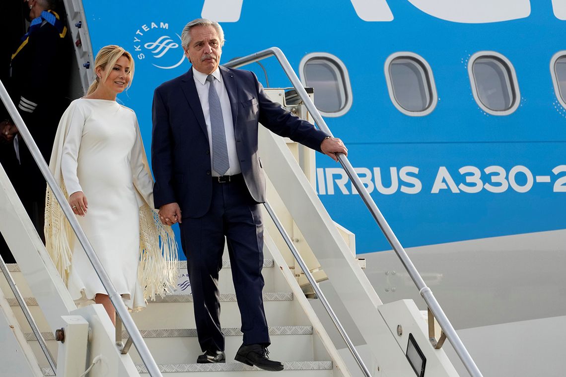 El jefe del Estado llegó acompañado por la primera dama, Fabiola Yáñez, y una comitiva integrada por los ministros de Relaciones Exteriores, Comercio Internacional y Culto, Santiago Cafiero; de Agricultura, Ganadería y Pesca, Julián Domínguez; y de Medio Ambiente, Juan Cabandié; y el embajador argentino ante los Estados Unidos y sherpa en el G20, Jorge Argüello.