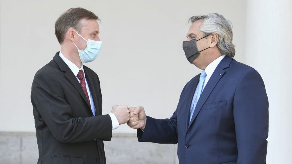 El presidente Alberto Fernández analizó este viernes con el asesor de Seguridad Nacional del gobierno de los Estados Unidos, Jake Sullivan, el fortalecimiento de las relaciones bilaterales en base al tratamiento de cuestiones prioritarias para ambos países, con especial interés en las cuestiones ambientales, las medidas para enfrentar el coronavirus y el sistema financiero internacional.