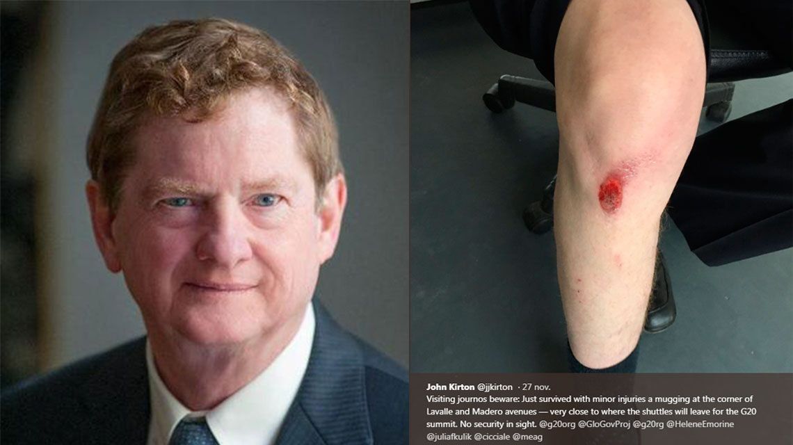 John Kirton (70), un profesor de ciencias políticas fundador del Grupo de Investigación G20 que participará en el próximo encuentro que se desarrollará en la ciudad de Buenos Aires, reveló que fue víctima del asalto en las últimas horas.