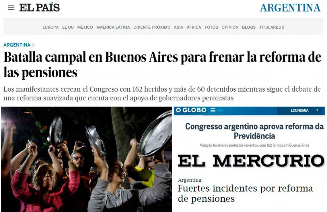 Algunos hablaron de "batalla campal" y otros de "disturbios" e "incidentes". Las intervenciones más picantes durante el debate Los medios internacionales se hicieron eco del clima enardecido que se vivió este lunes y martes a la madrugada en torno al debate de la reforma previsional en el Congreso de la Nación.