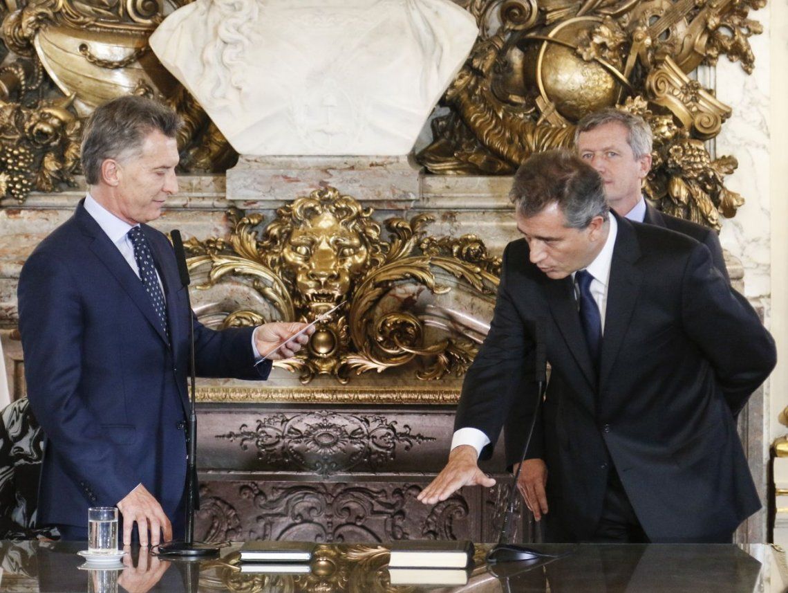 En el acto, antes de tomar juramento, Macri manifestó su “agradecimiento a los ministros salientes” y dijo que los cambios en su Gabinete “son como una carrera de postas en la que cada uno va llevando más adelante esta tarea y el que llega edifica sobre lo nuevo hecho y agregando cosas”.