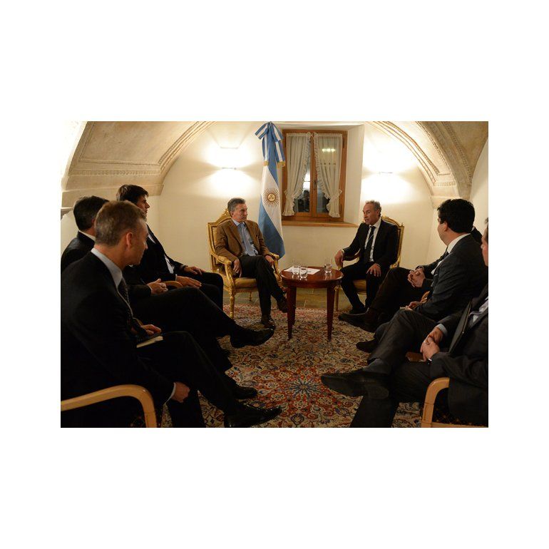 Posteriormente, participó de otro encuentro junto al directivo de la empresa argentina Pampa Energía, Marcos Marcelo Mindlin, quien le presentó un grupo de inversores interesados en la nueva perspectiva que se ha abierto en el país a partir del cambio político derivado de las últimas elecciones.