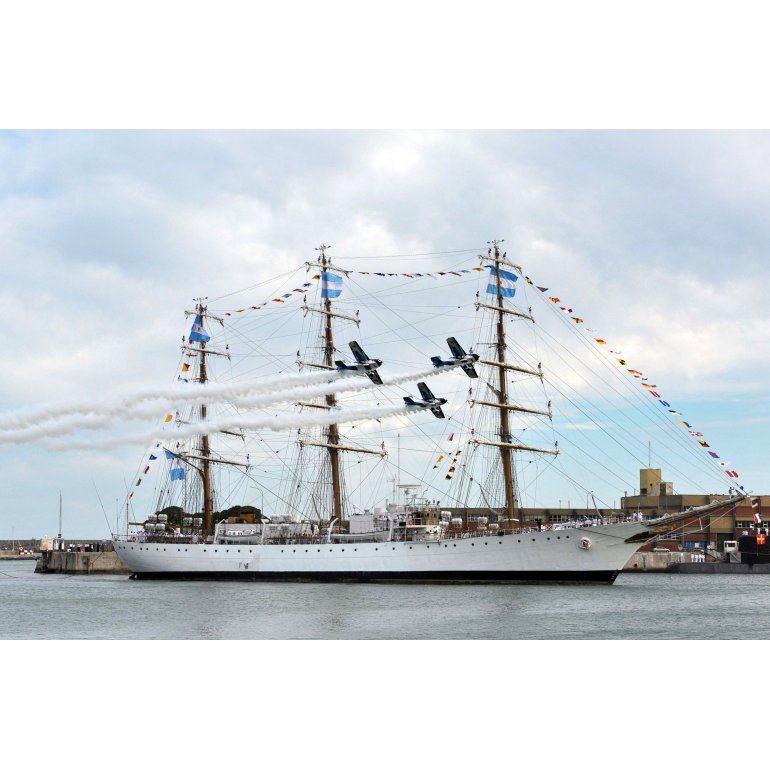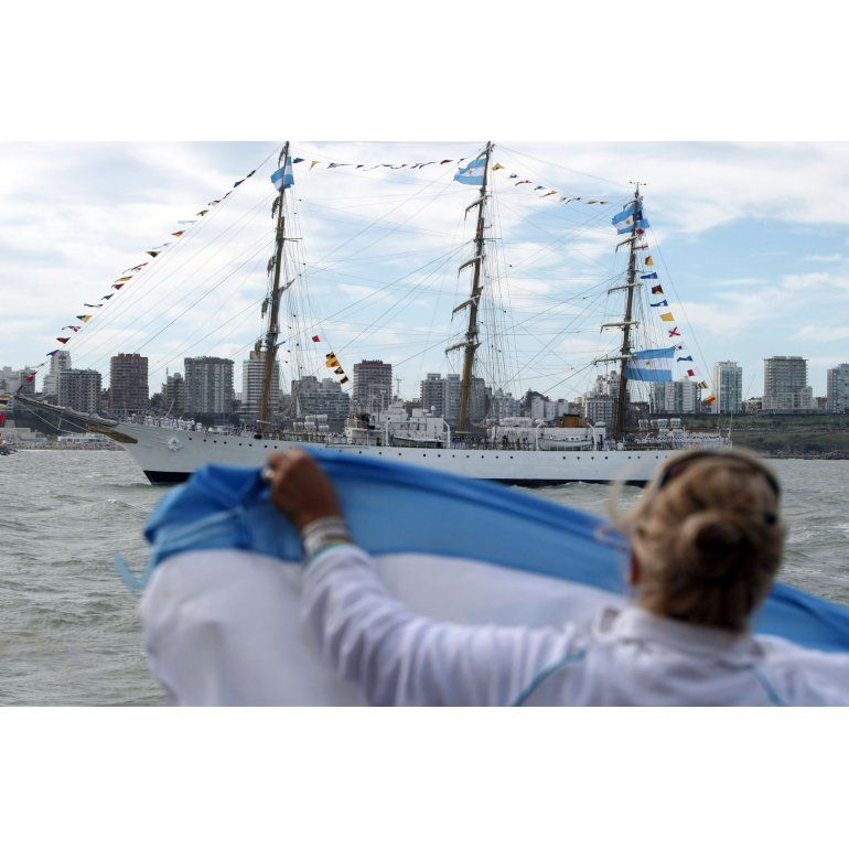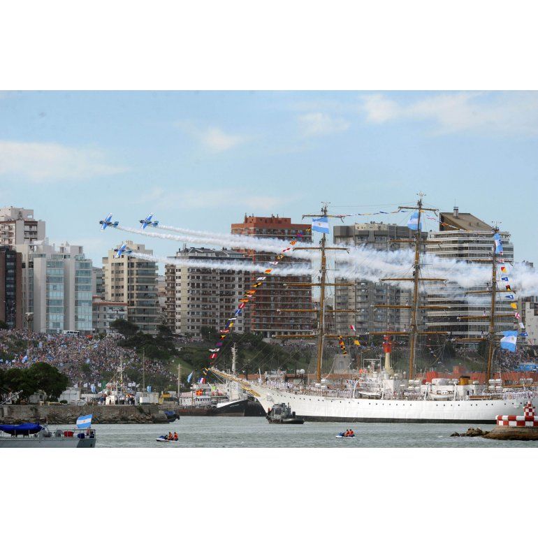 El inicio del show hizo bajar el sonido de los bombos más cercanos al palco y al espacio destinado a autoridades y familiares de los marinos que regresan.