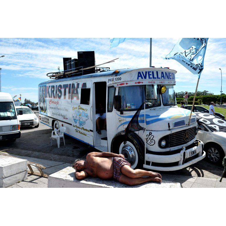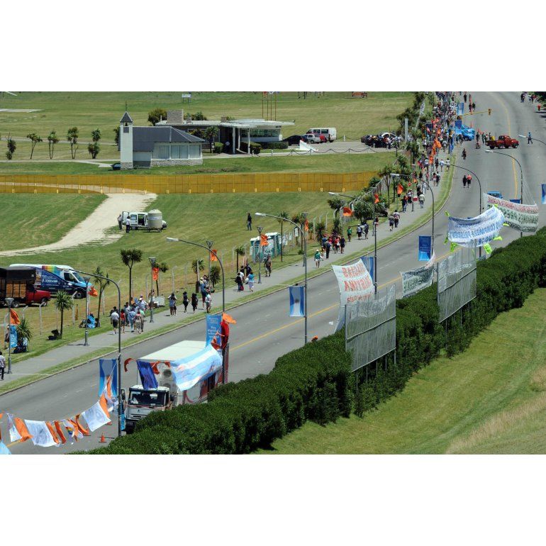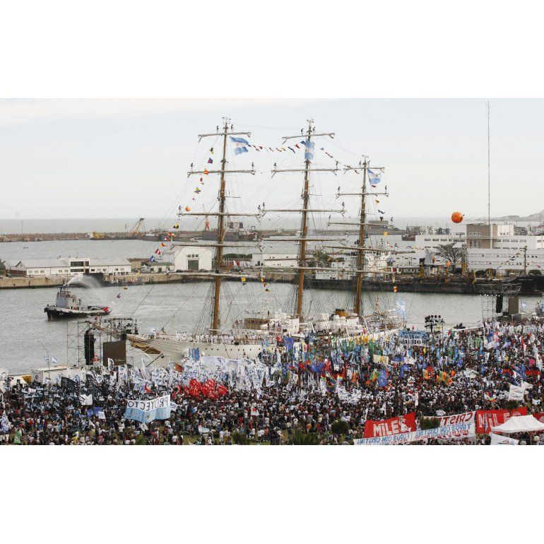 En el puerto, al que lentamente ingresaban columnas también con sus banderas y pancartas, se escuchaba música del rock nacional a través de un poderoso equipo de sonido junto al palco.