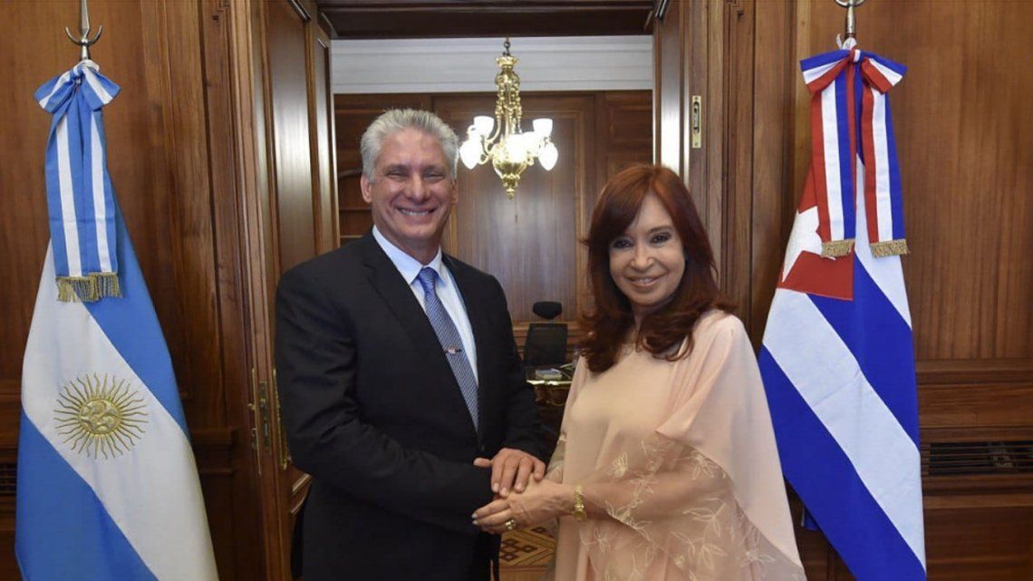 La vicepresidenta argentina Cristina Kirchner recibió en el Senado de la Nación al presidente de la República de Cuba, Miguel Díaz Canel.