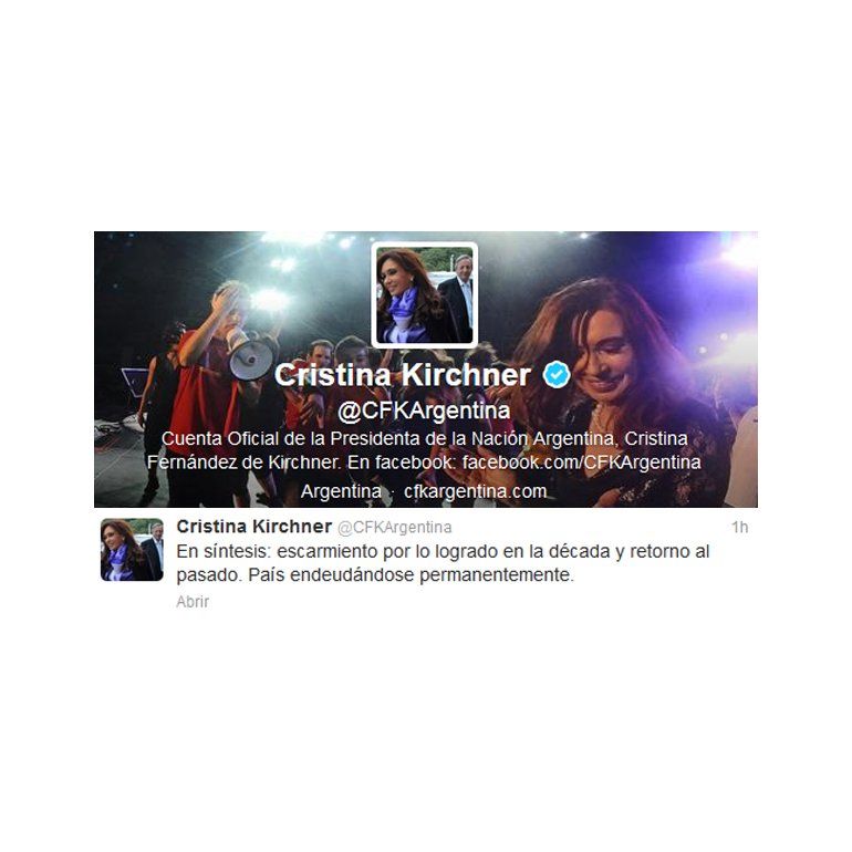 Por otra parte, en su cuenta de Twitter, la Presidenta contó que esta noche recibía en Olivos al presidente de Ecuador, Rafael Correa, y el nuevo canciller de Brasil, Luis Alberto Figueiredo.