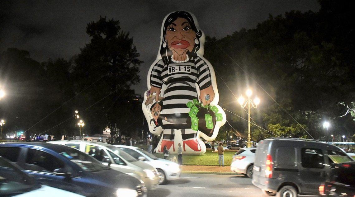 En las horas previas al segundo debate presidencial que se llevará a cabo esta noche en la facultad de Derecho de la Universidad Nacional de Buenos Aires (UBA), todas las miradas se posaron sobre un inflable gigante de la candidata a vicepresidenta por el Frente de Todos, Cristina Kirchener, con el uniforme de presa, instalado por la agrupación ‘Defensores por la Libertad’ en la plaza frente al edificio.