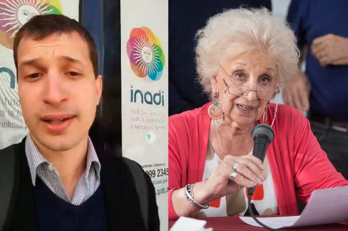 “Acabo de denunciar ante el @inadi a Estela de Carlotto por sus dichos discriminatorios contra los choferes en particular (entre los que se encuentra mi padre que es fletero) y, en general, contra las personas provenientes de hogares de bajos ingresos o sin formación superior”, publicó Santoro ayer al mediodía, luego de retirarse del Instituto Nacional contra la Discriminación, la Xenofobia y el Racismo.